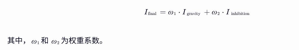 将引力模型和侧向抑制网络的结果通过加权平均或像素选择融合: