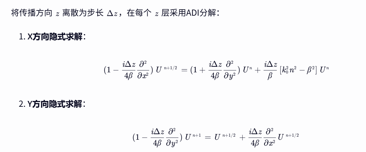 将传播方向 z 离散为步长 Δz,在每个 z 层采用ADI分解: