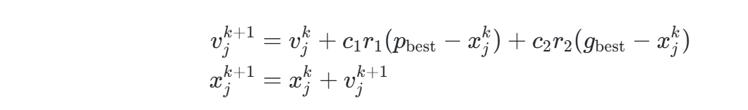 - 原理:模拟鸟群觅食行为,将解空间中的候选解视为“粒子”。每个粒子通过跟踪个体历史最优(pbest)和群体历史最优(gbest)更新位置(PID参数)和速度: