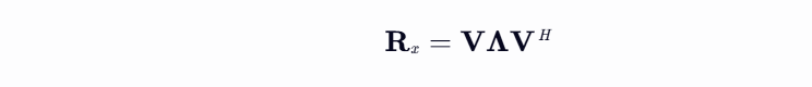 通过特征值分解,将协方差矩阵分解为信号子空间和噪声子空间。信号子空间由最大的K个特征值对应的特征向量组成,噪声子空间则由剩余的M−K个最小特征值对应的特征向量组成。