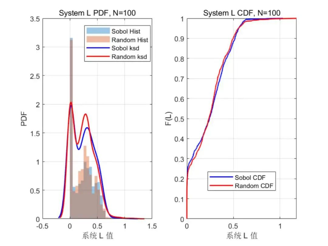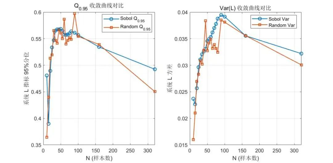 - 高效收敛:Sobol序列的收敛速度为O(N⁻¹),较传统MC的O(N⁻⁰·⁵)提升3-5倍。在5维不确定性空间中,1000次Sobol抽样即可达到传统MC 10000次的精度。