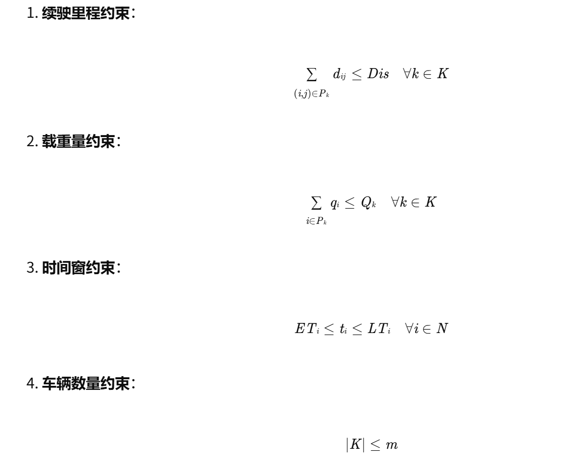 - 续驶里程约束:需确保单次路径长度不超过车辆续航能力