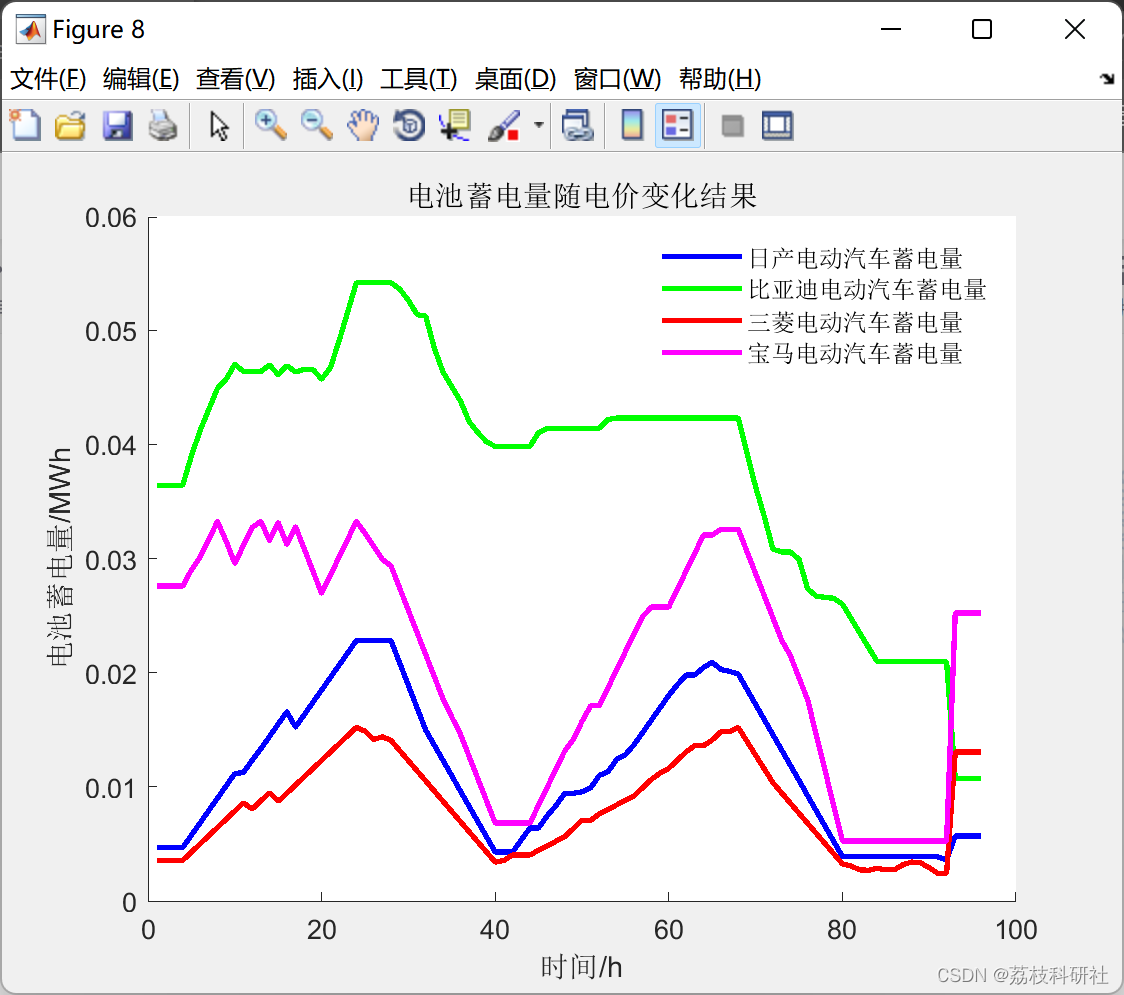 - 用户约束:出行需求、充电目标时长(如Matlab代码中的日产/比亚迪EV蓄电量曲线)。