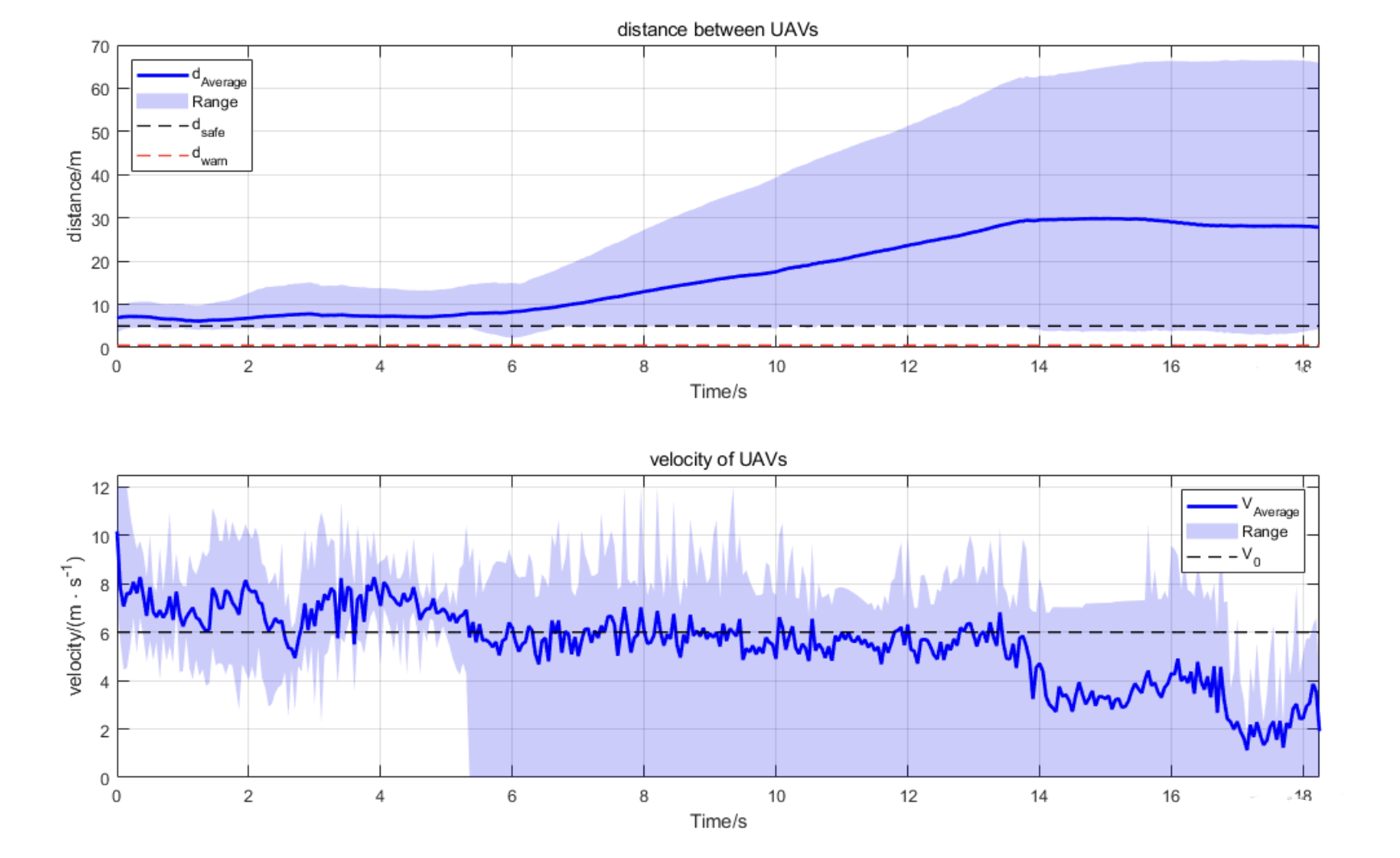 - 碰撞检测模块:实时监测无人机间距离,当 dij<dsafe(安全距离)时,触发速度/角度调整策略。