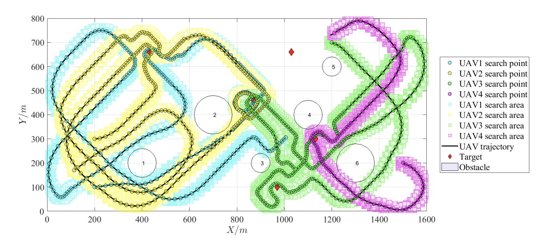 实验结果表明,与传统的路径规划算法相比,基于遗传算法的协同搜索策略能够有效地提高搜索效率和覆盖范围。特别是对于异构无人机协同搜索问题,该策略能够充分利用不同无人机的性能差异,实现优势互补,从而显著提高搜索效果。