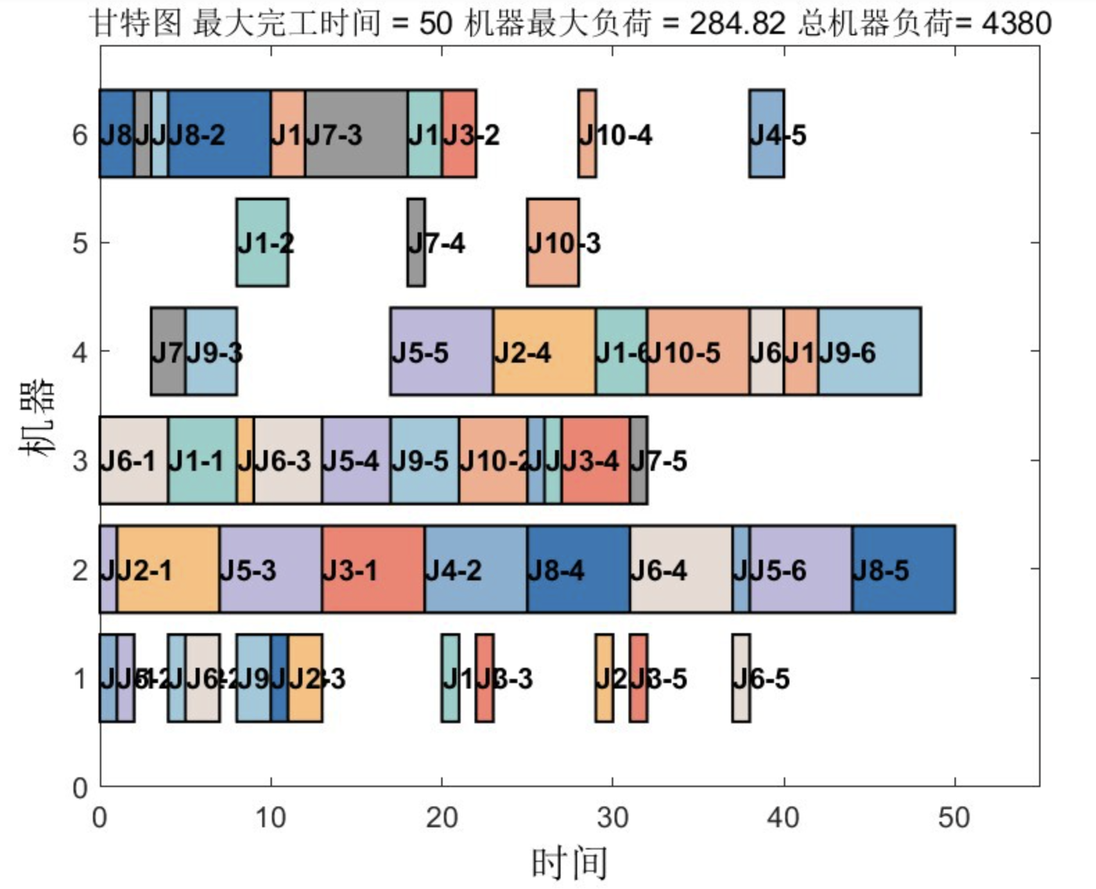FJSP问题可以描述为:有n个工件{J₁, J₂, ..., Jₙ}需要在m台机器{M₁, M₂, ..., Mₘ}上加工。每个工件包含一道或多道工序,工序顺序预先确定,每道工序可以在多台不同机器上加工,且加工时间随机器的不同而变化。调度目标是为每道工序选择最合适的机器,确定每台机器上各个工序的最佳加工顺序和开工时间,以优化某些性能指标。