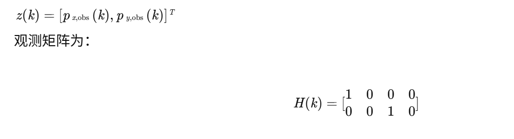 - 噪声参数:系统噪声协方差Q=diag(0.1,0.01,0.1,0.01),观测噪声协方差R=diag(1,1)。