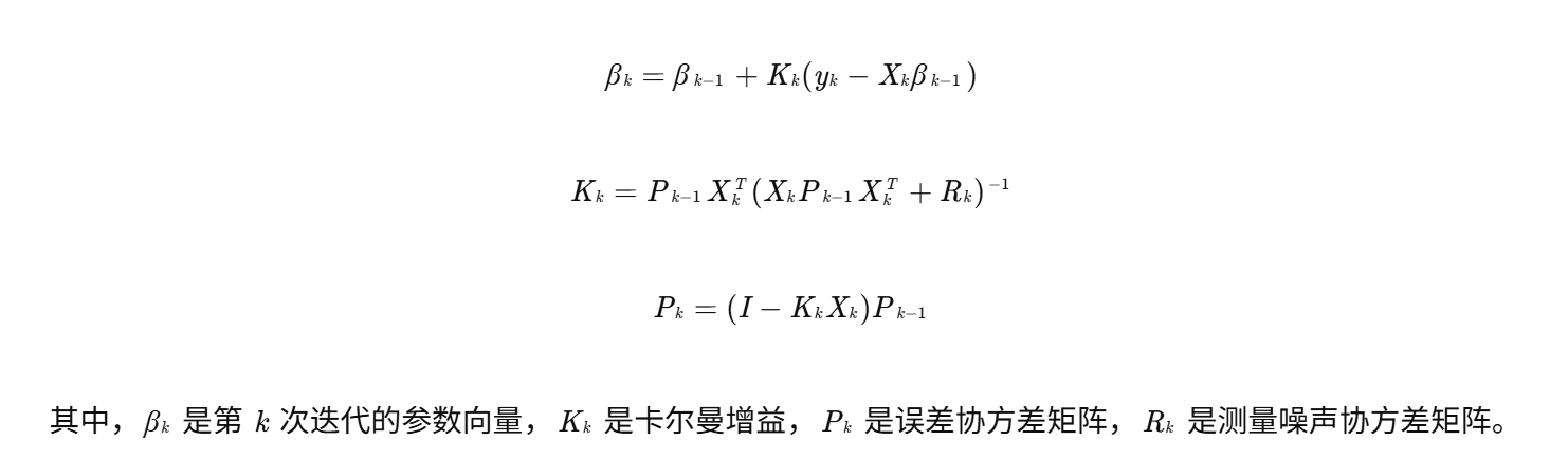 - 参数初始化:设置遗忘因子 λ=0.95−0.99、协方差矩阵 P0、噪声方差比 σH/σY。