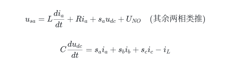 核心组件:三相桥式电路(6个开关管,如IGBT/MOSFET)、交流侧滤波电感(LL)、直流侧滤波电容(CC)及负载(RLRL)。