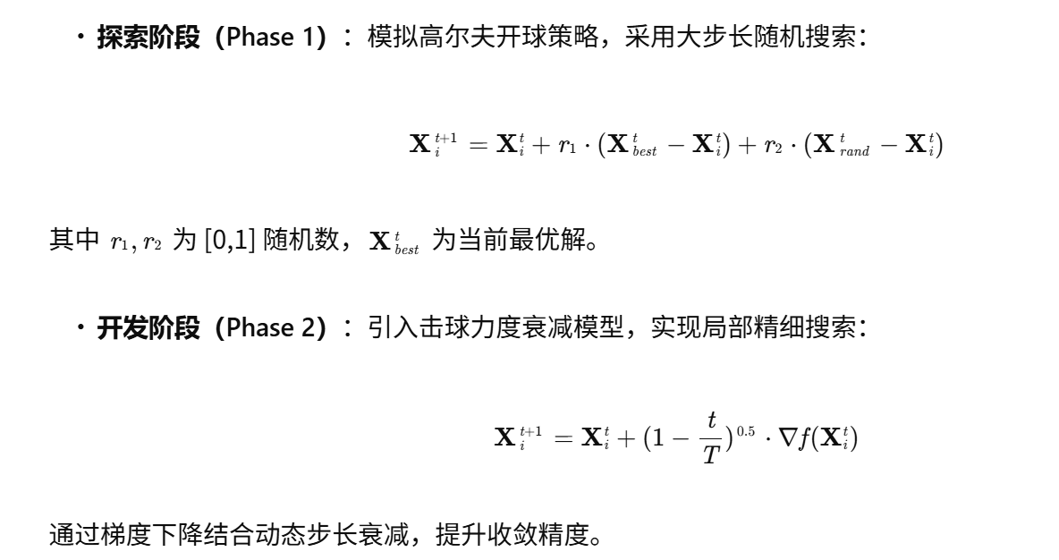 无人机三维路径规划是军事侦察、灾害救援、物流配送等领域的核心技术。传统方法如人工势场法(APF)易陷入局部最优,RRT算法虽能处理高维空间但路径冗余度高。2023年提出的GOA算法通过模拟高尔夫运动中的击球力度与方向调整策略,实现了探索与开发的自适应平衡,在能源调度、结构优化等领域展现出优异性能。本文将其引入无人机路径规划,重点解决山地环境下的动态约束问题。