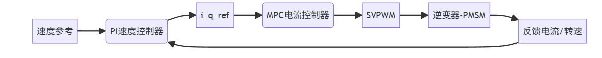 - 内环:MPC直接优化电压矢量,实现 iq→iq,ref 的快速跟踪。