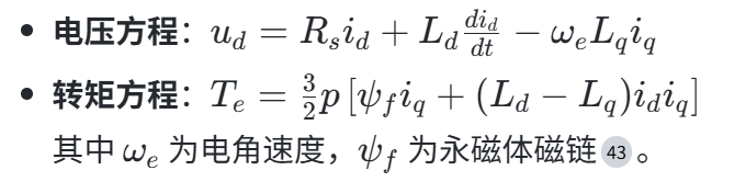 - d轴:控制磁通(通常设 id=0 以实现最大转矩输出);