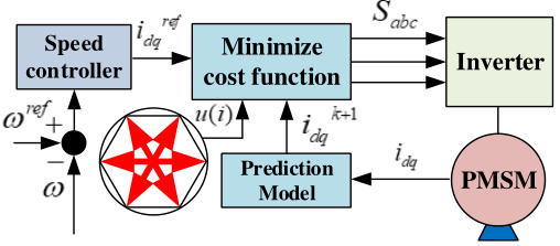 预测模型:基于PMSM离散化动态方程(如定子电流 id,iqid,iq 的状态空间模型)预测未来 NN 步的状态;
