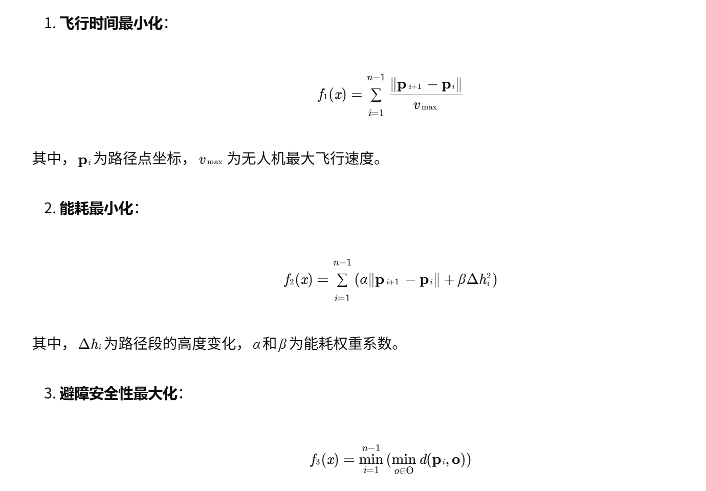 - 多目标优化:需同时优化飞行时间、能耗和避障安全性等冲突目标。