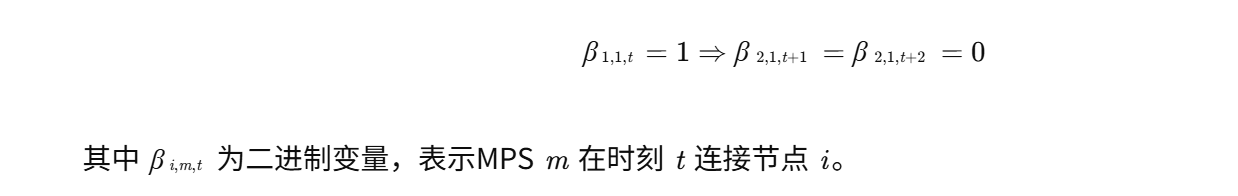 - MPS状态约束:包括充电/放电功率限制、电量状态(SoC)范围及行驶时间耦合(如MPS从节点 i 到 j 需满足行驶时间延迟);