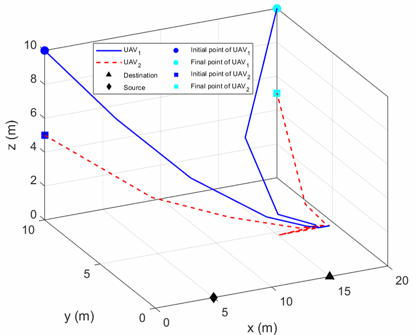 - 轨迹优化:固定无人机发射功率,优化其飞行轨迹以最小化能耗或通信时延。