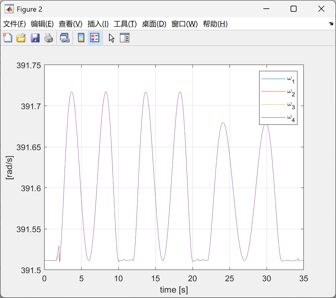 figure,plot(inputs(1,:)',sqrt(abs(inputs(2:5,:))')),legend('\omega_1','\omega_2','\omega_3','\omega_4'),grid on