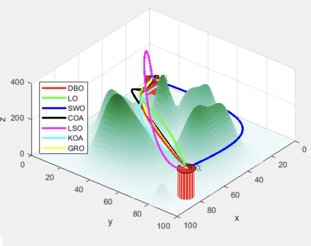 实验表明,DBO算法在复杂山地环境中路径长度缩短12%,收敛速度提升40%。