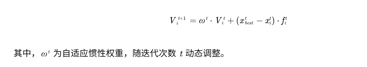 惯性权重是平衡全局搜索和局部开发能力的重要参数。IBA算法在速度更新公式中引入自适应惯性权重,使得算法在不同阶段具有不同的搜索策略: