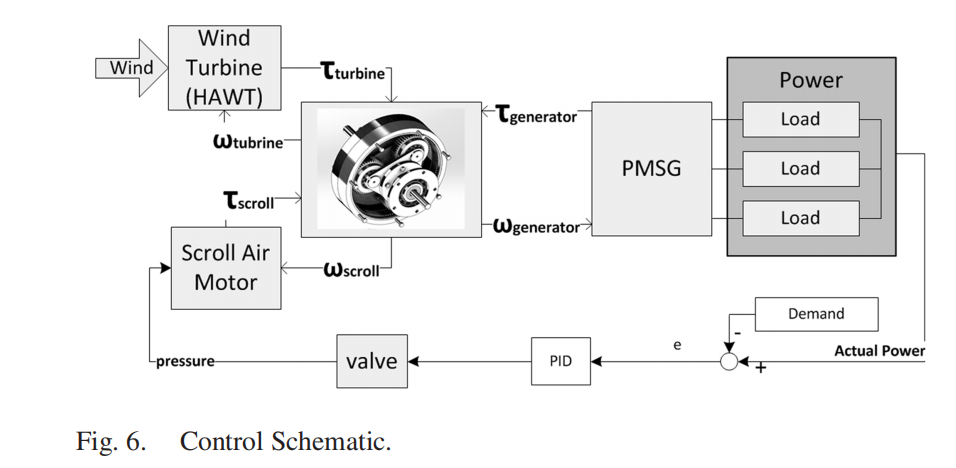 摘要—本文介绍了一种新型混合风力涡轮机系统,该系统由涡轮机传动轴与空气膨胀/压缩机连接的无级变速器组成。设计了一种机械功率分割装置,用来合成风力涡轮机和空气膨胀/压缩机传递的电力。利用实验室规模的实验测试装置对小型混合风力涡轮机系统进行了数学建模、分析和验证。通过利用压缩空气能量存储,证明了混合风力涡轮机系统可以在风速波动条件下提供平稳的电力输出。这种直接连接结构通过使用一个发电机而不是传统CAES系统结构中的两个发电机,降低了整个系统成本。该研究展示了通过风能与储能混合化带来的改进效率和灵活性对涡轮机运行的好处。