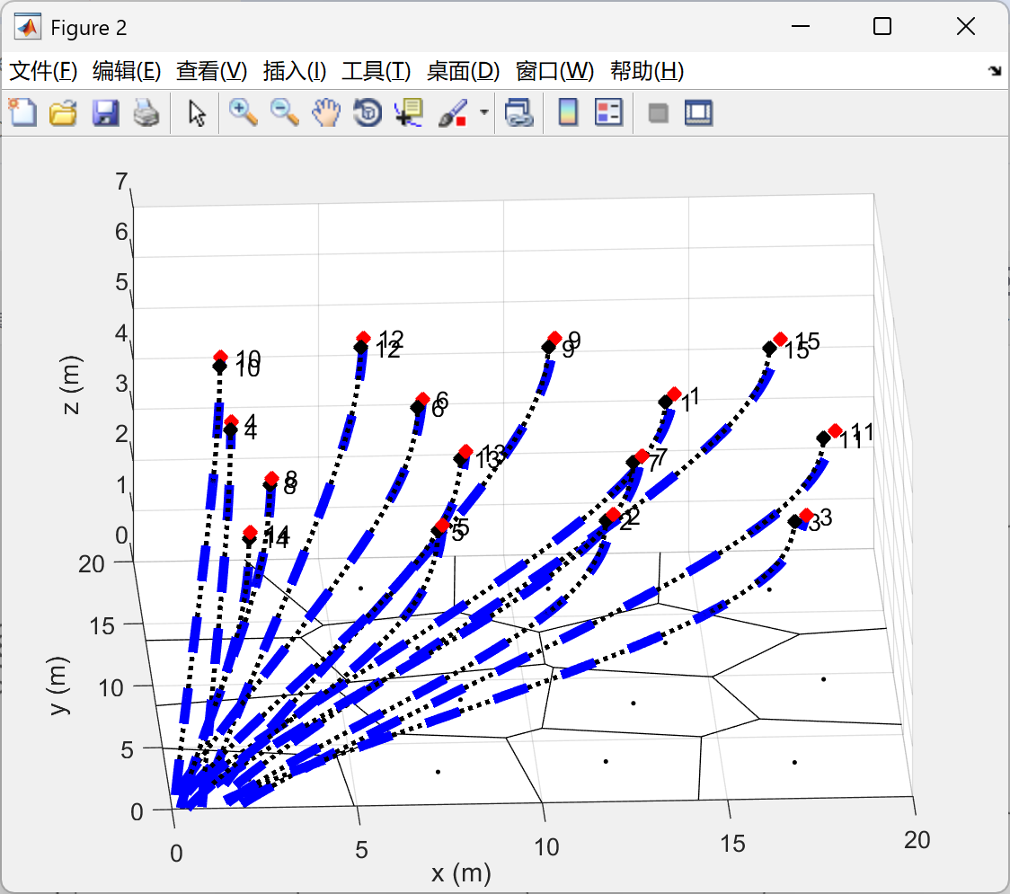 - 无障碍环境下的编队控制:在无障碍环境中,利用SNNs实现无人机编队的基本队形保持和变换。通过仿真实验验证SNNs在分布式控制中的有效性和鲁棒性。