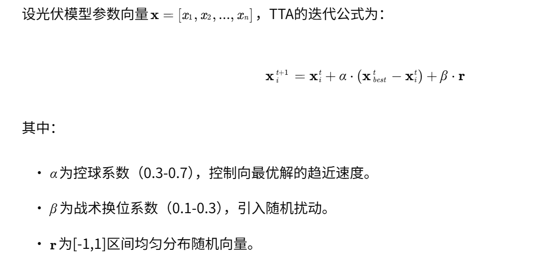 TTA算法灵感源于西班牙足球的“Tiki-Taka”战术,通过以下机制实现优化: