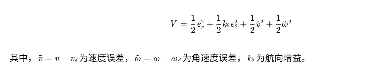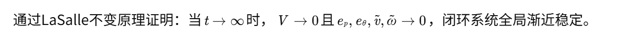 设计控制器使ep→0且eθ→0,同时保证闭环系统全局渐近稳定。