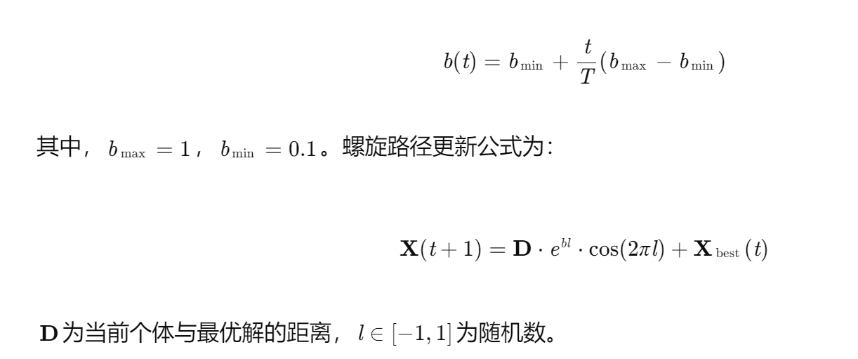 可变螺旋搜索:参考鲸鱼优化算法,动态调整螺旋因子b: