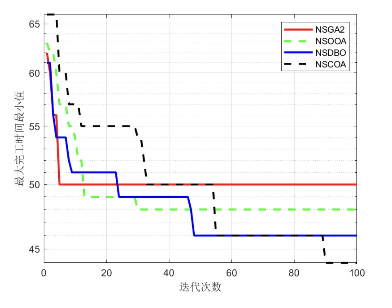 - NSCOA将最大完工时间从124分钟降至97分钟(减少21.8%)