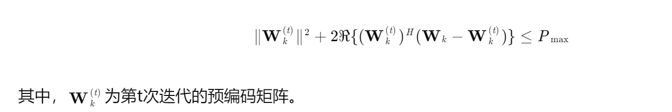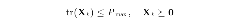 2. 半定松弛(SDR):通过引入辅助变量Xk=WkWkH,将功率约束转化为半定约束:
