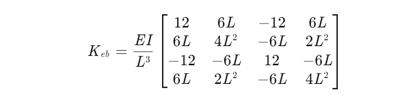 其中,E为弹性模量,I为截面惯性矩,L为单元长度。