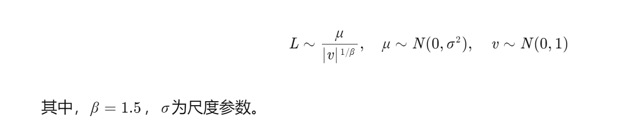 随机步长生成:莱维飞行步长L服从莱维分布,公式为: