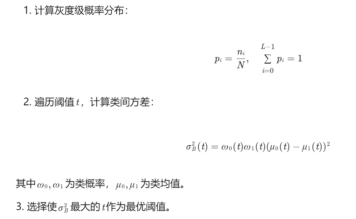 原理:基于最大类间方差的自适应阈值分割。