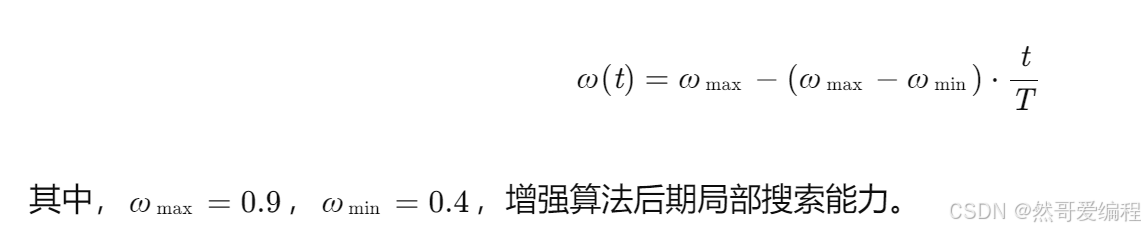 - 动态惯性权值:引入随时间衰减的惯性权重,增强算法后期收敛精度;