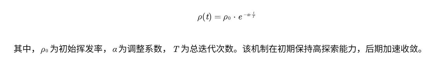 传统CACO算法采用固定挥发率,易导致早熟收敛。本文提出动态挥发因子: