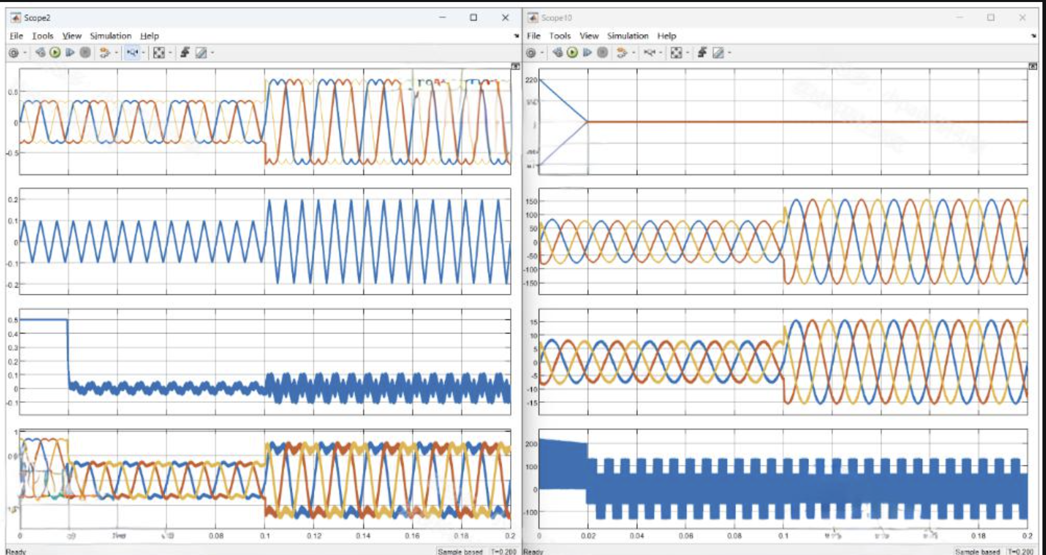 - 动态响应:SVPWM在负载突变时,中点电压恢复时间(0.2ms)显著短于SPWM(1.5ms);