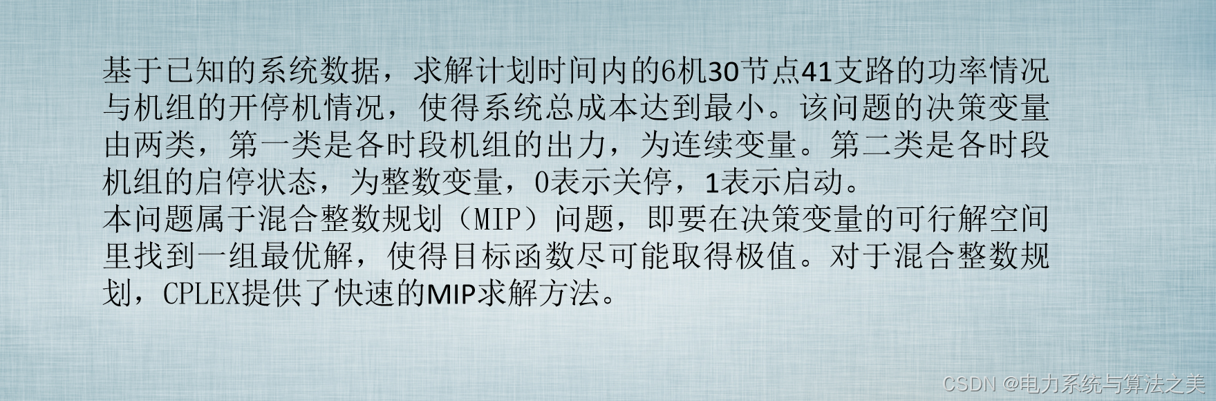 摘要:机组组合问题作为电力系统经济调度的核心环节,其优化求解对提升能源利用效率、保障电网安全稳定运行具有关键意义。本文聚焦混合规划方法在机组组合问题中的应用,系统梳理了混合整数规划模型构建原理,深入分析了机组启停状态转换、爬坡约束、备用容量等关键约束条件的数学表达形式。通过对比传统优化算法与智能优化算法的性能特点,结合IEEE标准测试系统与省级电网仿真案例,验证了混合规划方法在求解大规模机组组合问题时的计算效率与求解精度优势。研究结果表明,基于混合规划的机组组合优化模型能够有效降低系统总运行成本,为电力系统调度决策提供科学依据。