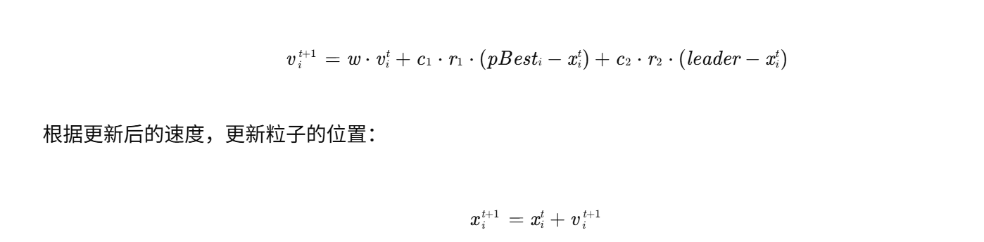 根据粒子的当前位置、个人最好位置和领导者的位置,更新粒子的速度: