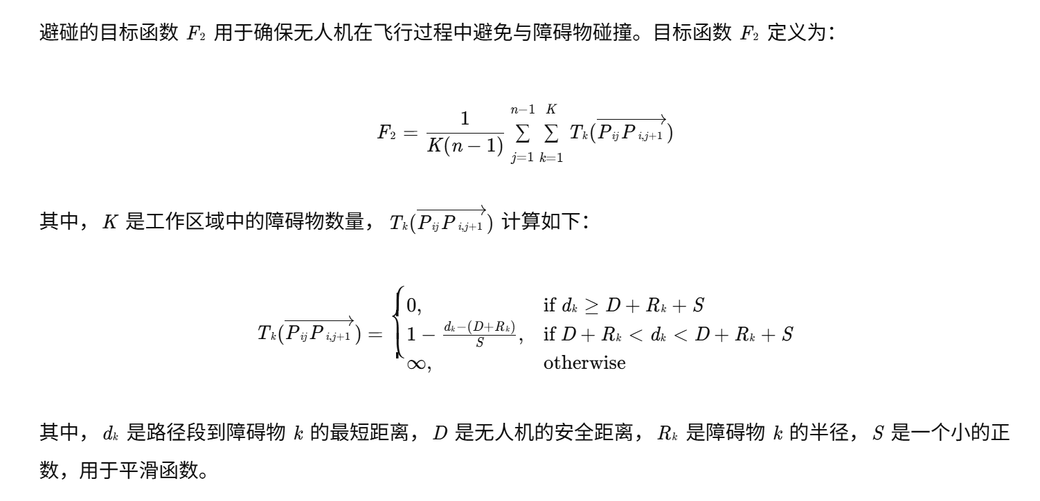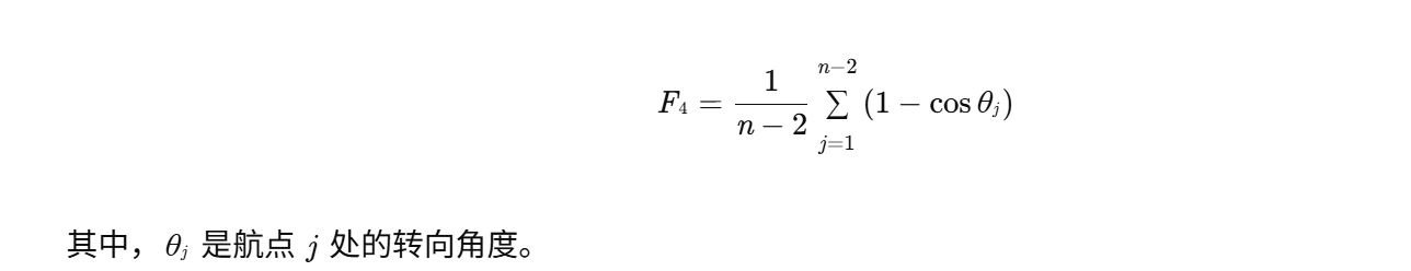 平滑度的目标函数 F4 用于衡量无人机飞行路径的平滑程度,以减少转向角度的变化,从而降低能量消耗。目标函数 F4 定义为: