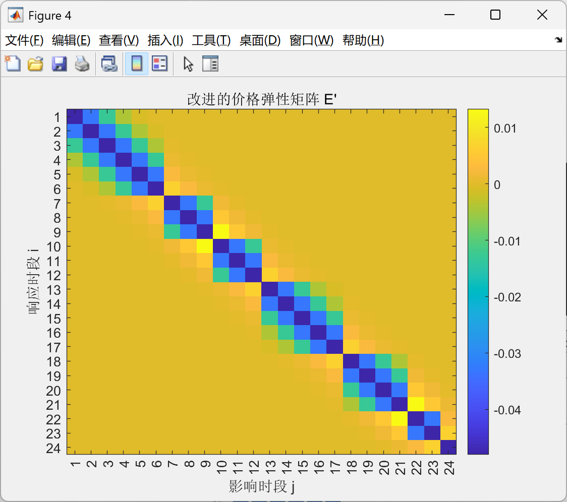 - 价格弹性矩阵计算:根据收集的数据,按照基于弹性效应权重的改进价格弹性矩阵模型,计算不同时段之间的价格弹性系数,构建价格弹性矩阵。