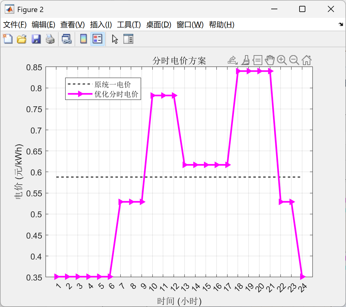- 电价决策模型求解:利用遗传算法求解基于价格弹性矩阵的分时电价决策模型,得到最优的峰谷分时电价方案。