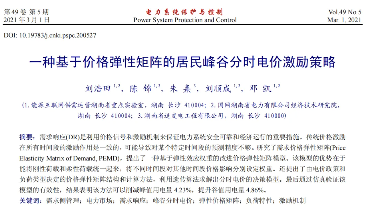 一种基于价格弹性矩阵的居民峰谷分时电价激励策略研究文档