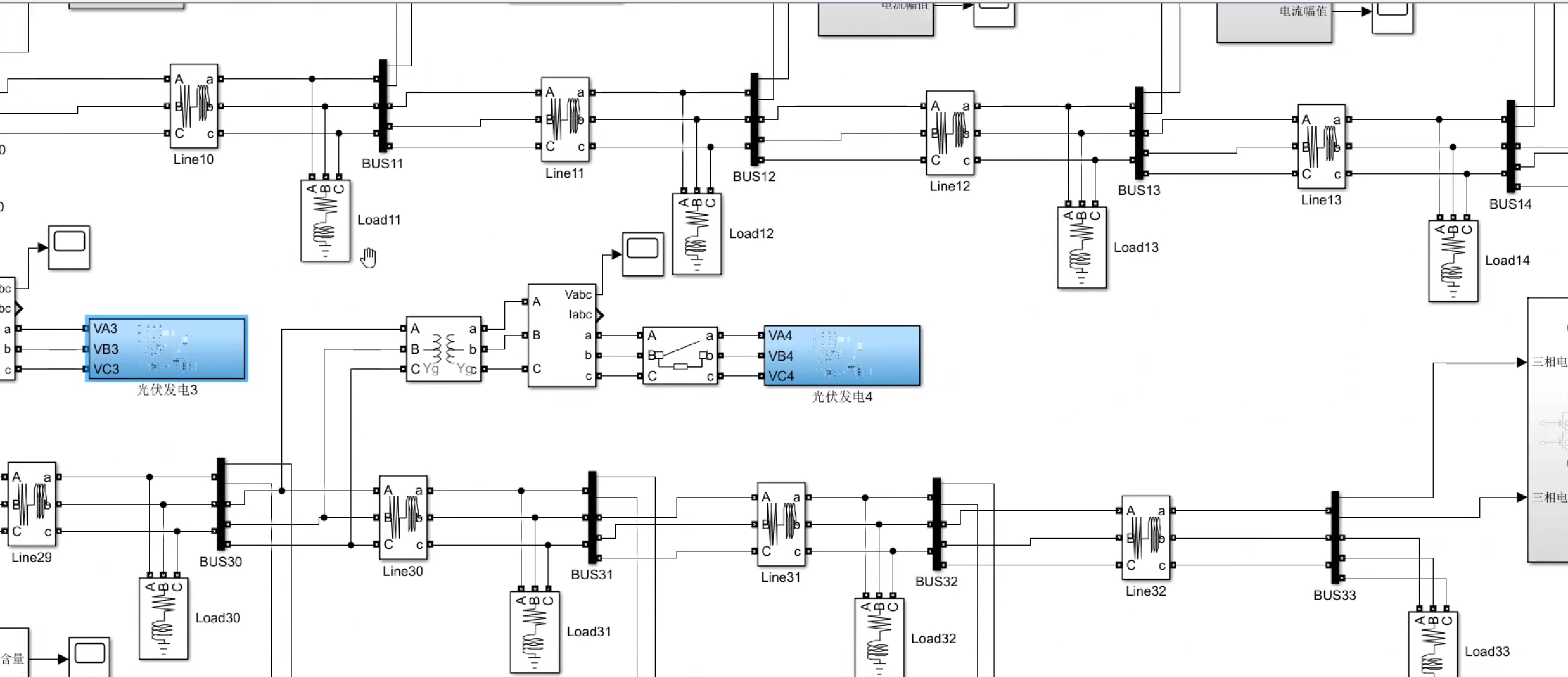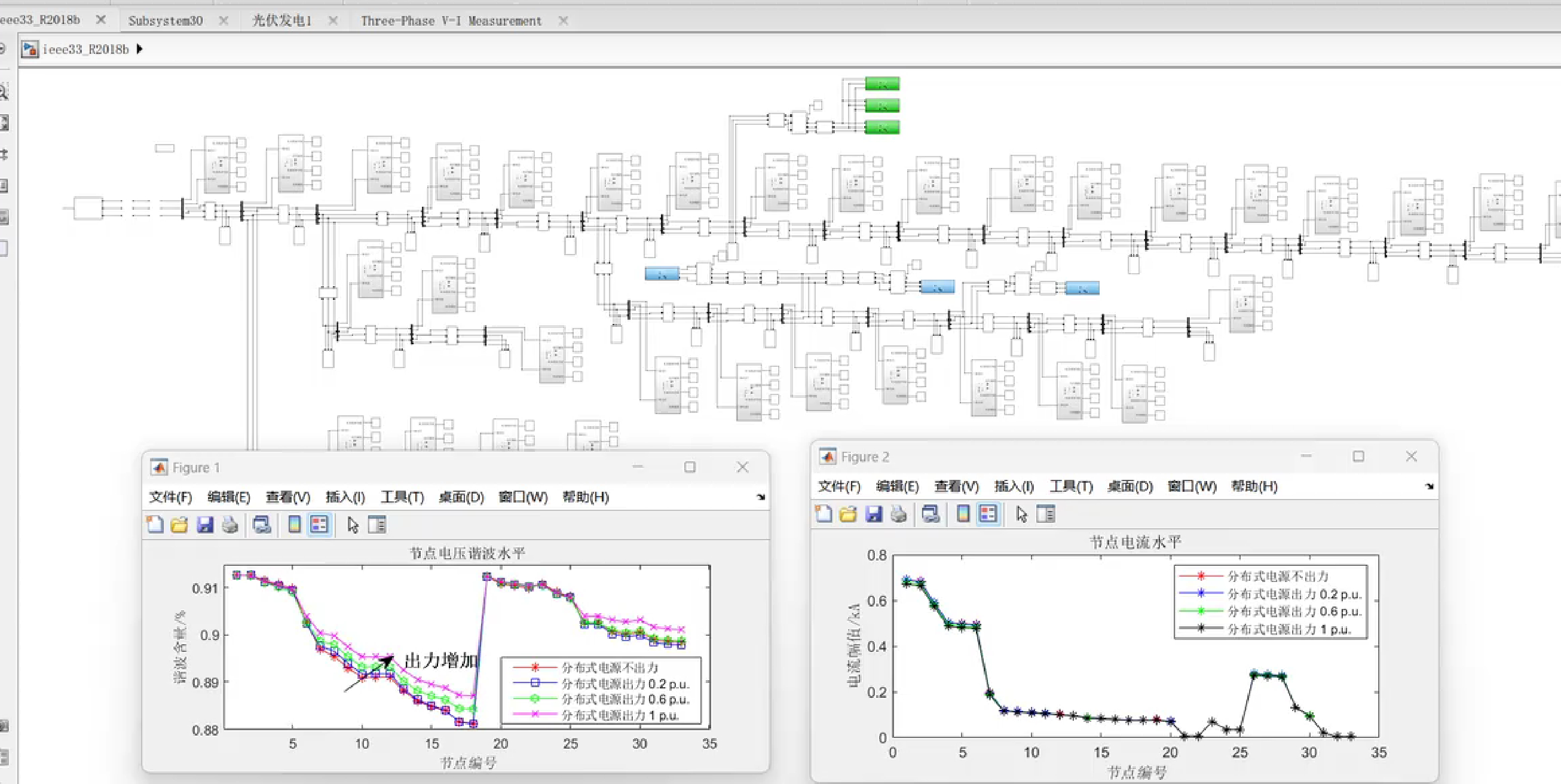 本文通过Simulink仿真验证了光伏并网对IEEE33节点系统电能质量的影响机制: