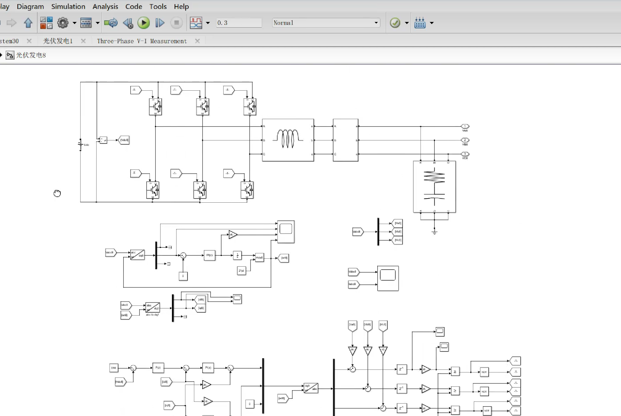 - 电压外环:通过PI调节器维持直流侧电容电压稳定,确保光伏阵列工作于最大功率点跟踪(MPPT)模式;