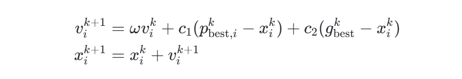 其中,惯性权重ωω协调全局/局部搜索,加速常数c1c1、c2c2分别控制个体与社会学习。