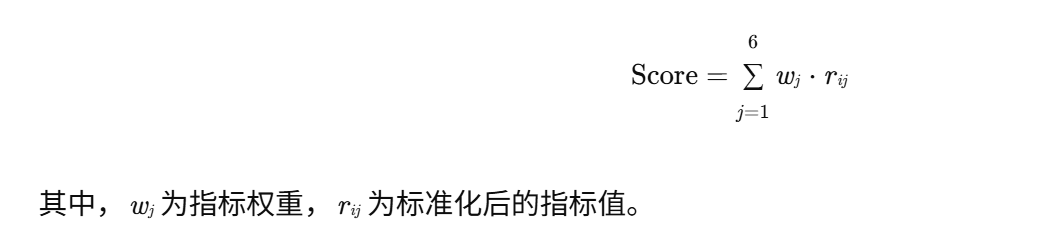 采用组合赋权法(层次分析法+熵权法)计算指标权重,通过线性加权得到综合评分: