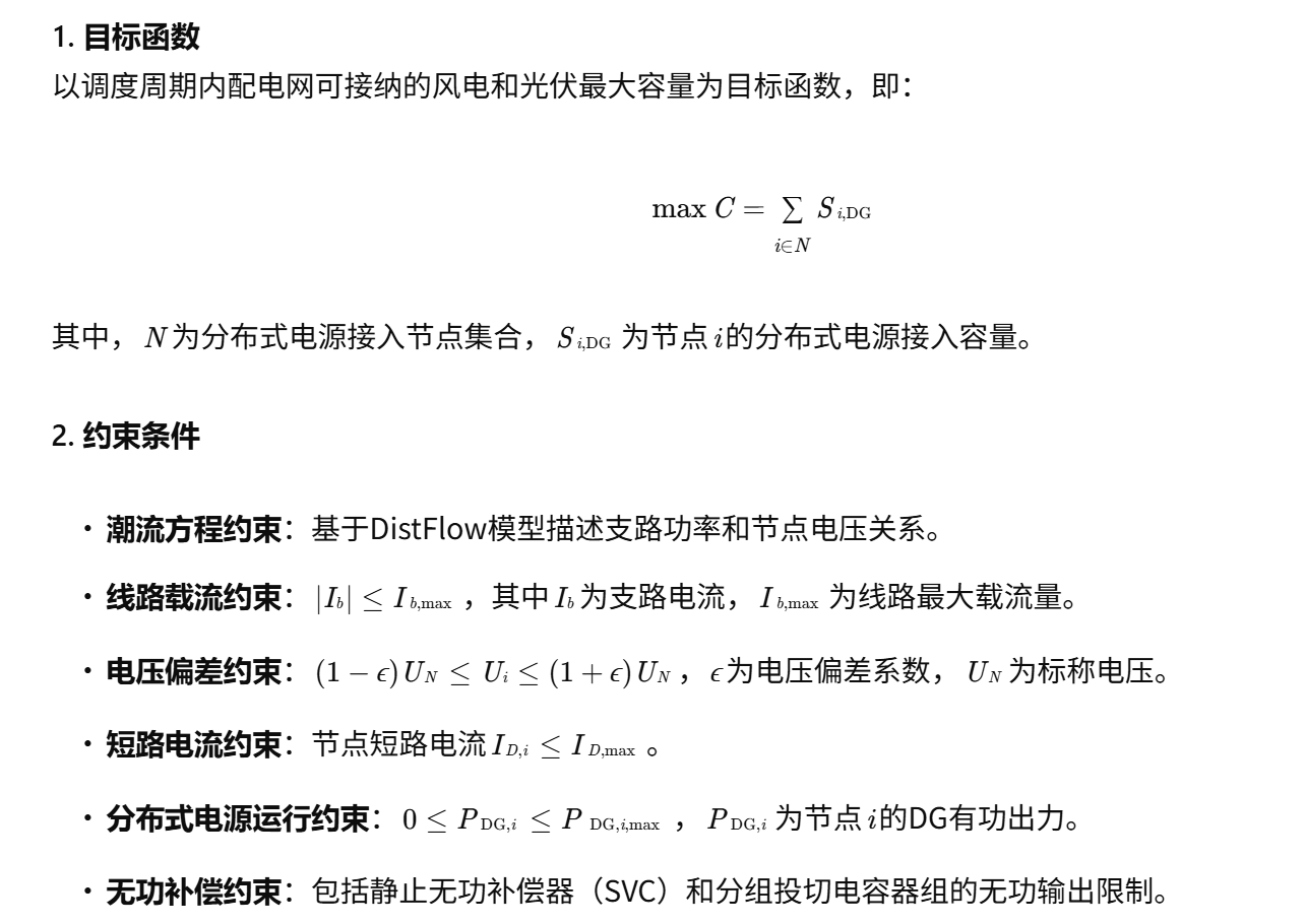 - 模型创新:首次将二阶锥松弛应用于含高比例DG的配电网承载力评估,兼顾计算效率和精度。