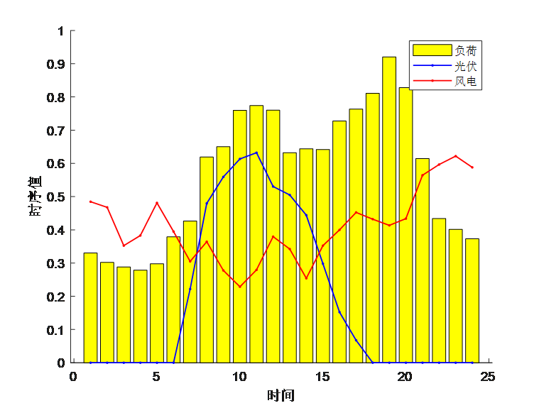 - 接入风电和光伏,容量上限为总负荷的120%。