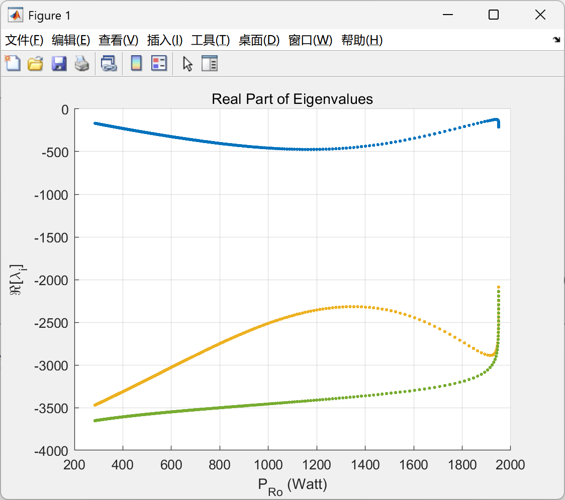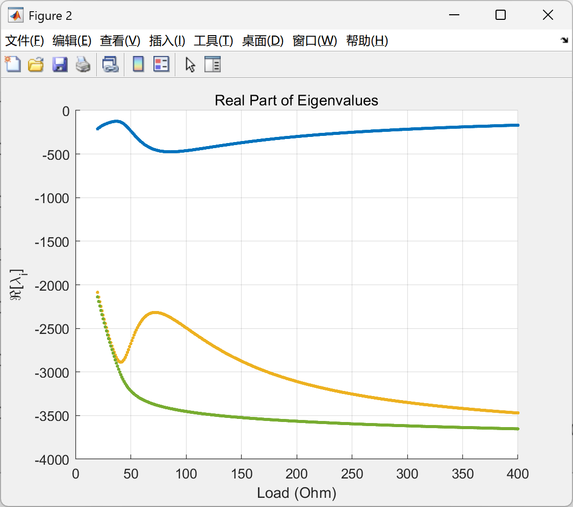 执行“E_Stability_Analysis.m”脚本,绘制根轨迹图(图1)。当负荷功率从50kW增至150kW时,系统主导极点始终位于左半平面,验证了稳定性。