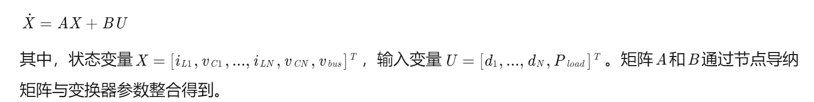 将N个DC-DC变换器模型与负荷模型耦合,构建全局状态空间方程:
